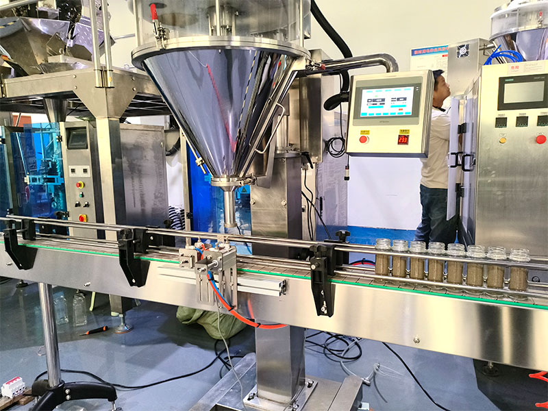 全自動胡椒粉灌裝機因高效、精準、統一、智能的生產優勢,成為了粉體物料解決灌裝方案的主要設備,它采用螺桿定量的灌裝方式,通過螺桿的旋轉,將胡椒粉按照設定的標準規格設置在容器當中,全自動胡椒粉灌裝機配備的多臺智能化機械設備,能夠有效改善胡椒粉的流動性,確保灌裝過程更加順暢。他能夠針對:胡椒粉、辣椒粉、花椒粉、食用鹽、雞精、味精、淀粉等物料的灌裝。