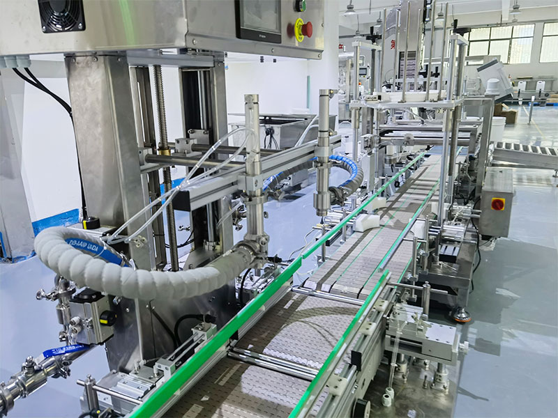 2、在灌裝精度方面,該機采用伺服稱重定量模塊,以前期高速充填,后期精細補料的方式,規避物料流速慣性的生產誤差,確保透析液灌裝的高精度暑促。